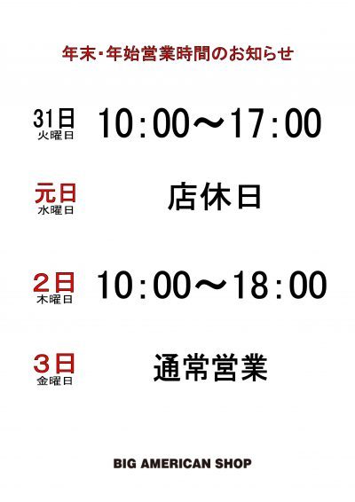 2019年も、倉敷ビッグアメリカンショップをご愛顧頂き、ありがとうございました。