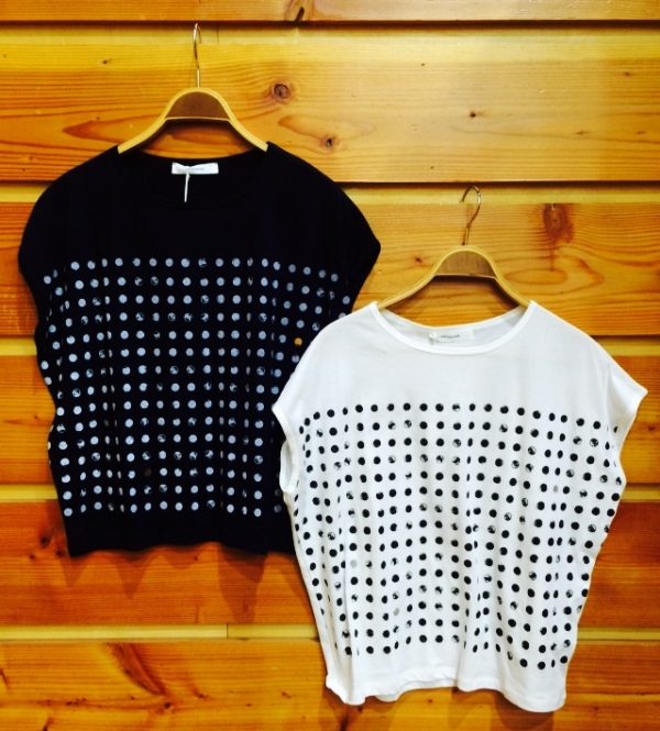 ドット柄は難しいと思っている方も、このT-シャツなら柄もおさえめなモノトーンで、シルエットが横に広がりすぎる事もないので、着易いデザインになっています。