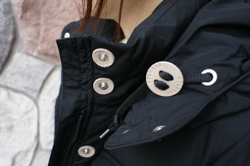 ホルバーのジャケットには、スナップボタン、ジッパーのプルタブ、ドローコードのストッパーなど必ずレザー製ディティールが採用されています。
