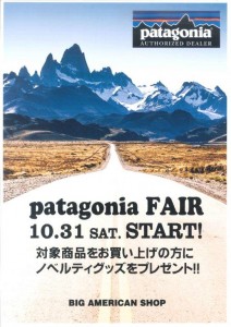 patagonia FAIR 開催中!! 2015年10月31日 BAS STAFF BLOG,S・PARK,NAKASYO ビッグアメリカンショップでは、10月31日(土曜日)より patagonia FAIR を開催中です。 期間中、patagonia商品をお買い上げのお客様にノベルティグッズをプレゼントいたします。 ノベルティグッズは、無くなり次第終了になりますので、ご了承ください。 (倉敷ビッグアメリカンショップ S・パーク店、中庄店、岡山各店にて開催中)